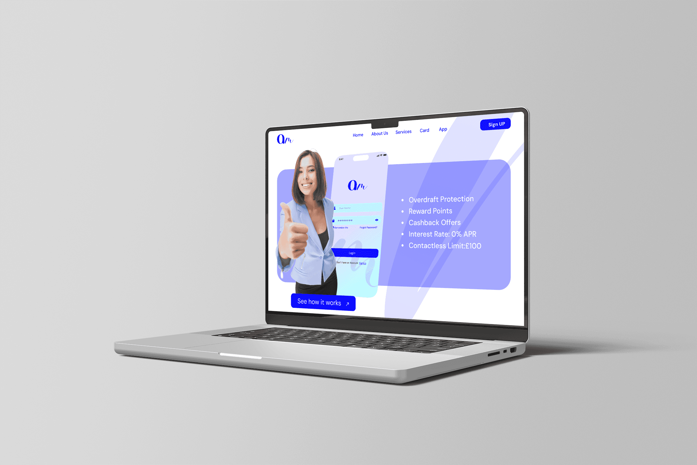 We rooted the visual identity in the concept of modern fluidity — effortless movement, financial freedom, and stylish minimalism. The wordmark combines clean geometry with a soft script-style ‘m’, symbolising the blend of trust and warmth. A calming yet confident colour palette — primarily gradients of electric blue and soft violet — gave the brand a bold but polished tone. Every touchpoint was crafted to feel premium, accessible and intuitive.