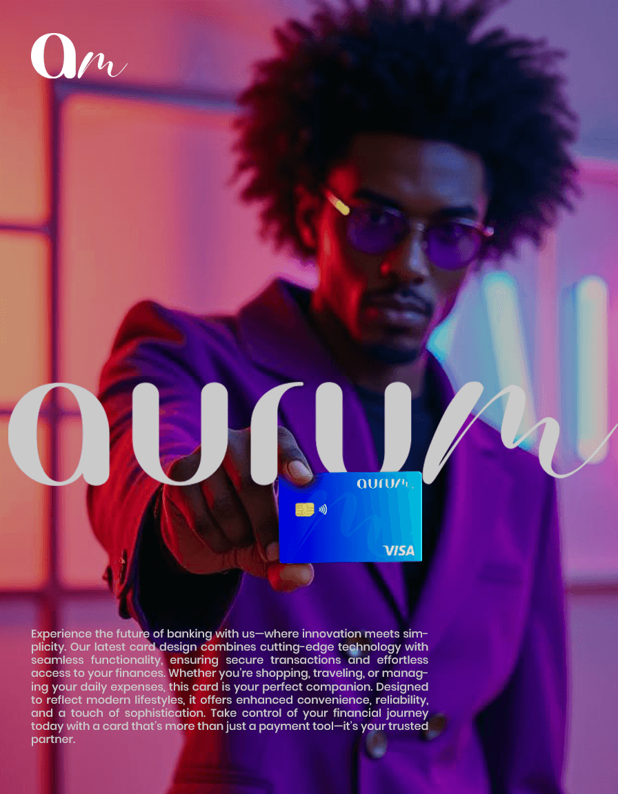 Aurum launched with a confident, modern presence — visually distinctive while radiating trust. The branding helped position Aurum as more than just a financial service; it became a lifestyle utility. Feedback has praised its intuitive app experience and standout card design, successfully connecting with its target market: digital-savvy users seeking elegance and ease in their financial lives.