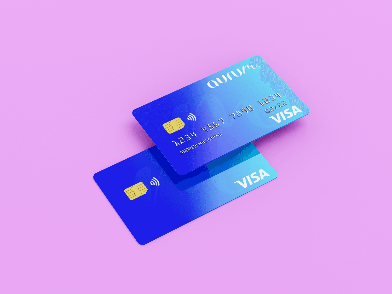 Card Design: A contactless-ready debit card with vibrant colour gradients and subtle gloss overlays.