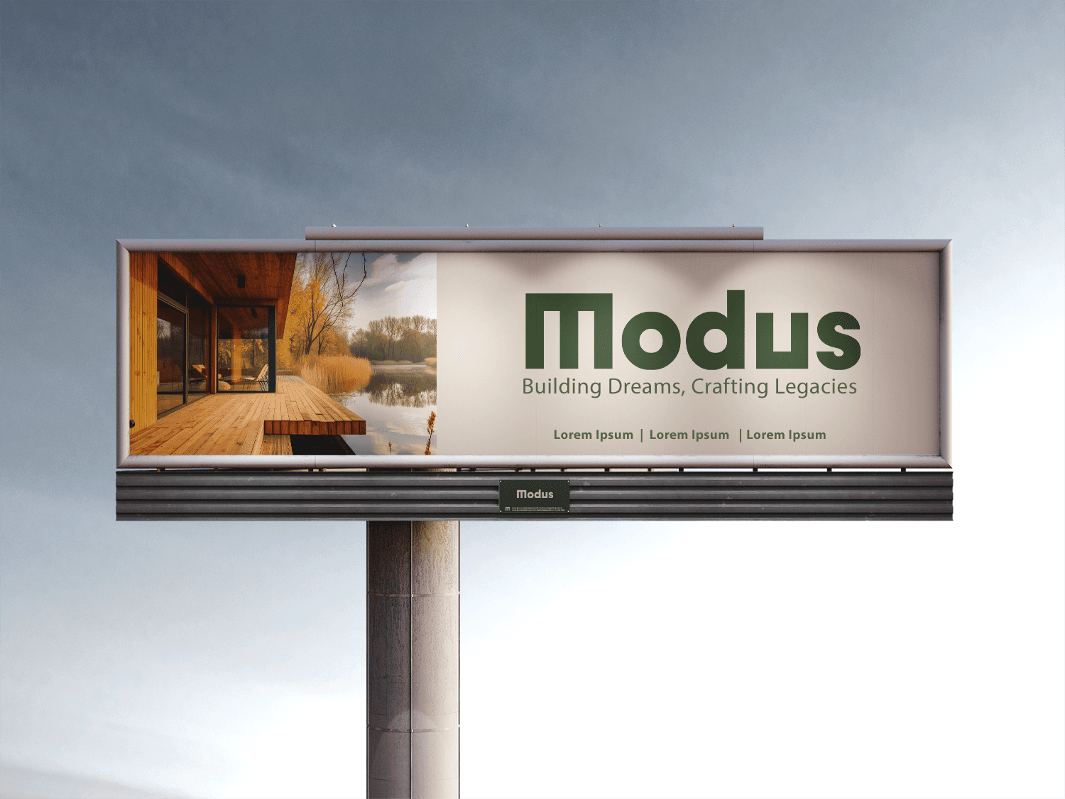 We grounded the Modus brand in clarity and calm. Drawing inspiration from architectural forms and natural palettes, the design system features rich greens, neutral tones, and strong typography. We built a cohesive brand ecosystem spanning print, signage, digital platforms, and merchandise — all anchored by the “M” monogram and the brand’s promise: Building Dreams, Crafting Legacies. Every touchpoint was meticulously considered, from calendars and business cards to responsive web interfaces.