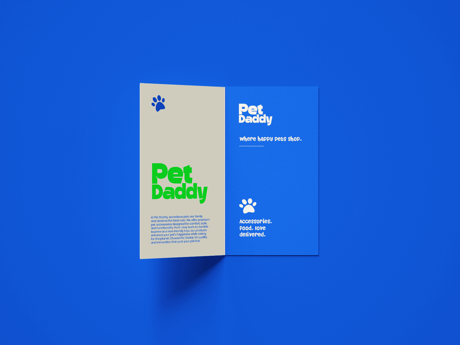 The pet product market is full of clichés and outdated branding. Pet Daddy needed to break through the noise—not just as a seller, but as a partner in pet wellbeing. The challenge was to design a brand that speaks to modern, urban pet parents, builds trust instantly, and brings joy through every interaction, whether digital or physical.